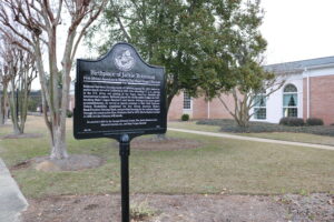 SAVANNAH, GA, January 28, 2022 – The Georgia Historical Society, in conjunction with Major League Baseball and the Jackie Robinson Cairo Memorial Institute, Inc., dedicated the Birthplace of Jackie Robinson historical marker at the Roddenbery Memorial Library in Cairo, Georgia. This historical marker replaces one located at Jackie Robinson’s birthplace damaged by gunfire in 2021. A private unveiling at the new, duplicate historical marker at the site of the Robinson birthplace took place preceding the public dedication.