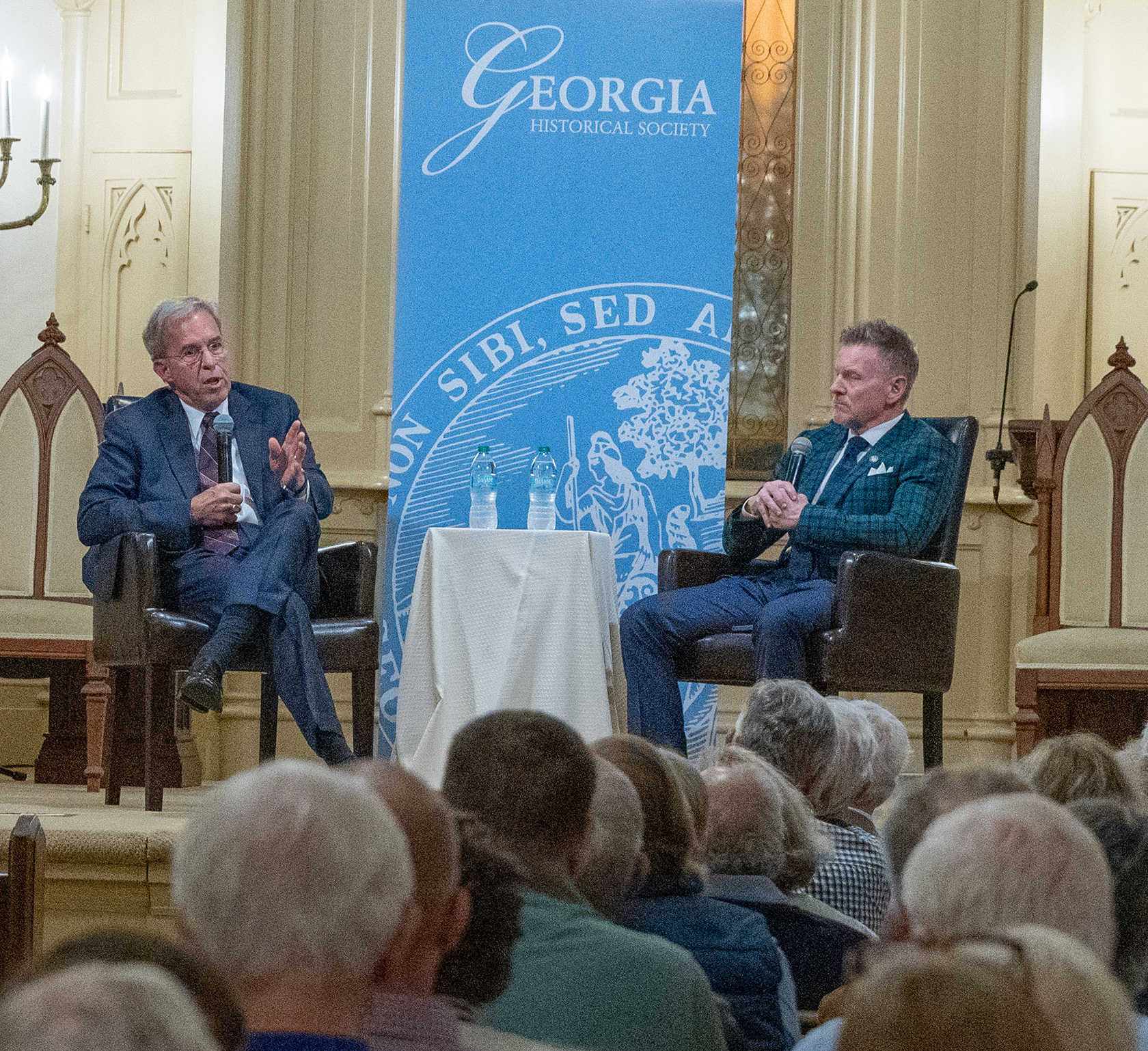 The evening program explored the Revolutionary War’s pivotal middle years and their lasting impact on the fight for American independence. In conversation with Dr. Stan Deaton, the Dr. Elaine B. Andrews Distinguished Historian at GHS, Atkinson discussed his latest work, The Fate of the Day: The War for America, Fort Ticonderoga to Charleston, 1777–1780, which explores the pivotal middle years of the American Revolution, including the 1779 Siege of Savannah, when American and French forces fought on the knife edge between victory and defeat.