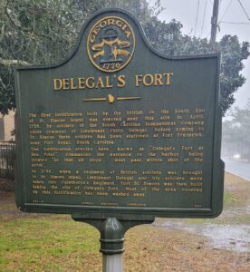 Marker Text: The first fortification built by the British on the South End of St. Simons Island was erected near this site in April, 1736, by soldiers of the South Carolina Independent Company under the command of Lieutenant Philip Delegal. Before coming to St. Simons these soldiers had been stationed at Fort Frederica near Port Royal, South Carolina.