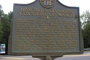 July 18. Hascall's div. left the Burdett farm (on Mt. Paran Rd) & marched N.E. to this point, turned S. E. on Cox's line of march, passing his column at the Samuel House plantation.