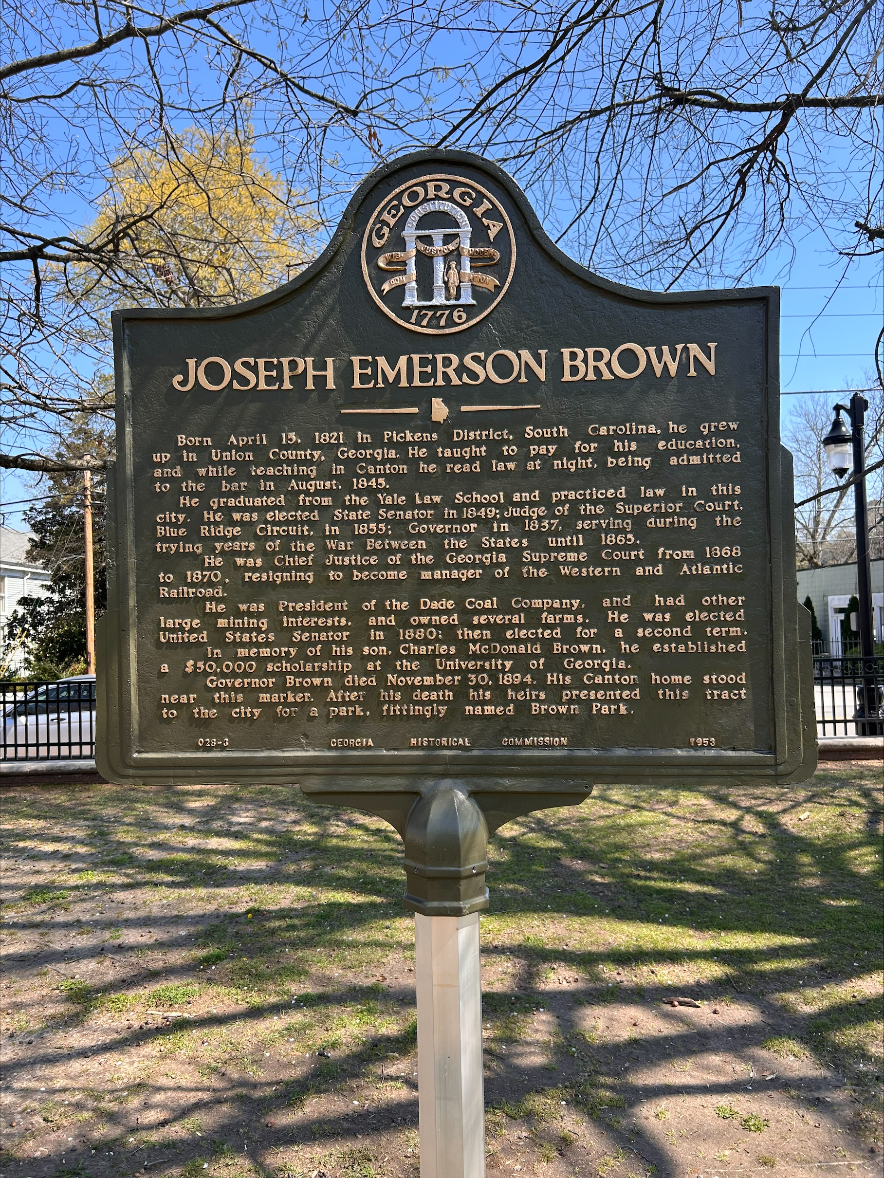 Marker Text: Born April 15, 1821 in Pickens district, South Carolina, he grew up in Union County, Georgia. He taught to pay for his education and while teaching in Canton he read law at night, being admitted to the bar in August, 1845.