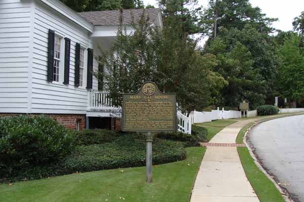 Marker Text: Author, poet, historian and Confederate heroine ~ Mary Ann Harris Gay (1828-1918) lived in this house from 1850 to 1914. She is best known for her Life in Dixie During the War which describes the Union Siege of Atlanta and the tribulations of the home front. From this house, Miss Mary and her family, the Stokes, witnessed the skirmishing in Decatur on July 22, 1864, while hiding in the cellar. General Kenner Garrard's cavalry headquartered on the property where the house once stood.