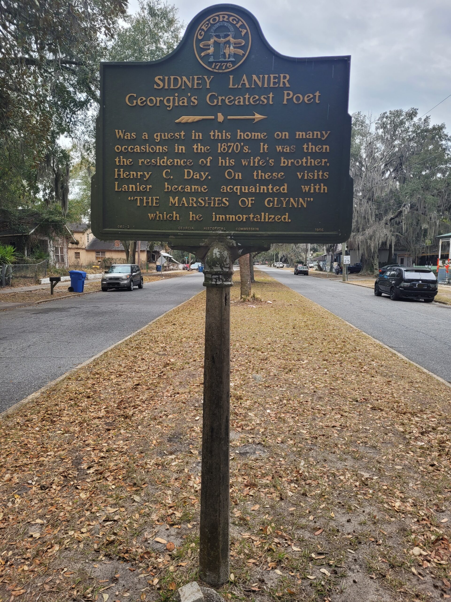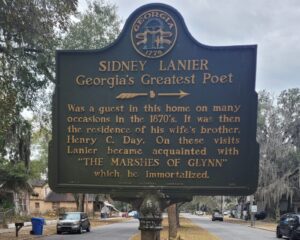Marker Text: Was a guest in this home on many occasions in the 1870's. It was then the residence of his wife's brother, Henry C. Day. On these visits Lanier became acquainted with "THE MARSHES OF GLYNN" which he immortalized.