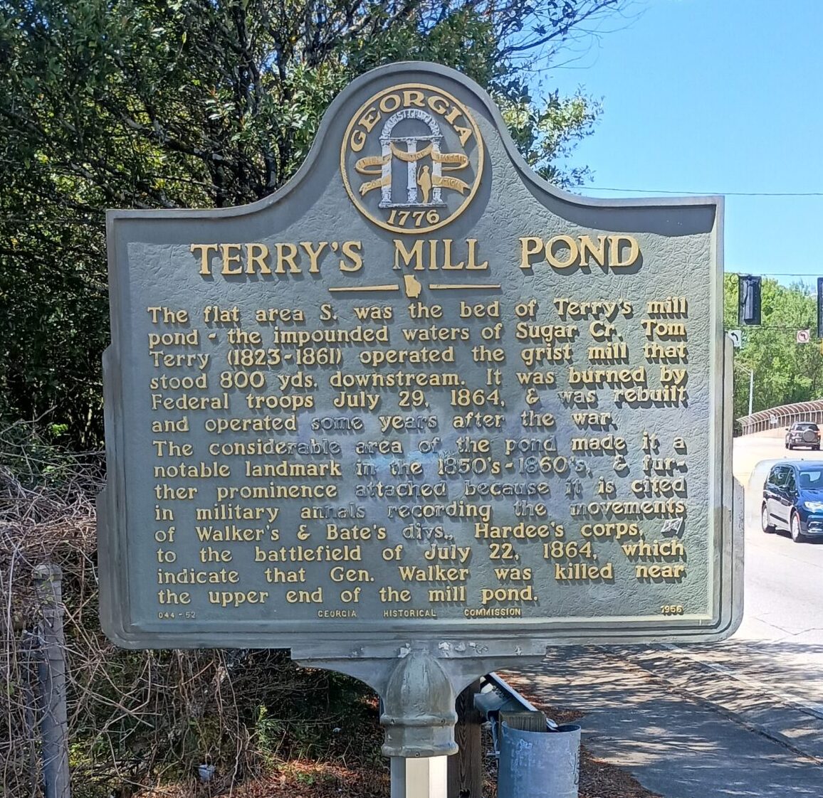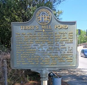 The considerable area of the pond made it a notable landmark in the 1850's - 1860's, & further prominence attached because it is cited in military annals recording the movements of Walker's & Bate's divs., Hardee's corps, [CS] to the battlefield of July 22, 1864, which indicate that Gen. Walker was killed near the upper end of the mill pond.