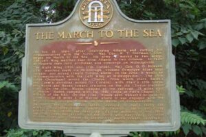 Marker Text: On Nov. 21, 1864, with the arrival of Smith's Division, 17th corps, preceded by the 1st Alabama Cavalry [US] which met with only sporadic resistance, the Right Wing (15th and 17th Corps) of General Sherman's army, which had left Atlanta on Nov. 15th on its destructive March to the Sea, began concentrating around Gordon where it would be in communication with the Left Wing (14th, and 20th Corps), then converging on Milledgeville.